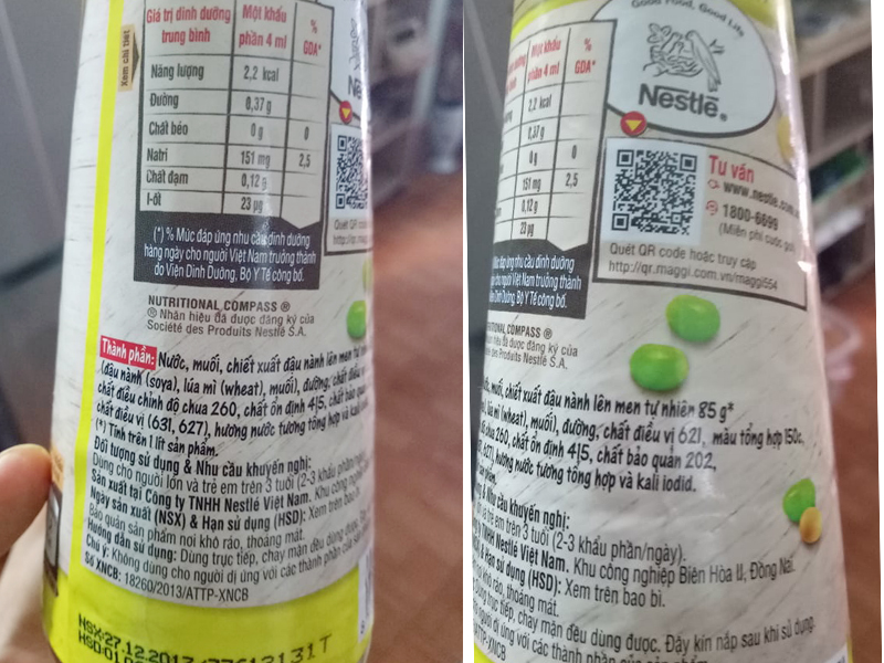 Dưới đây là một ví dụ hình ảnh thành phần được ghi rất rõ trong loại nước tương phổ biến trên thị trường mà chúng tôi tin gần như gia đình nào của Việt Nam cũng dùng