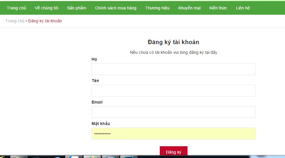 Giao diện trang đăng ký tài khoản tại website để trở thành khách hàng thân thiết
