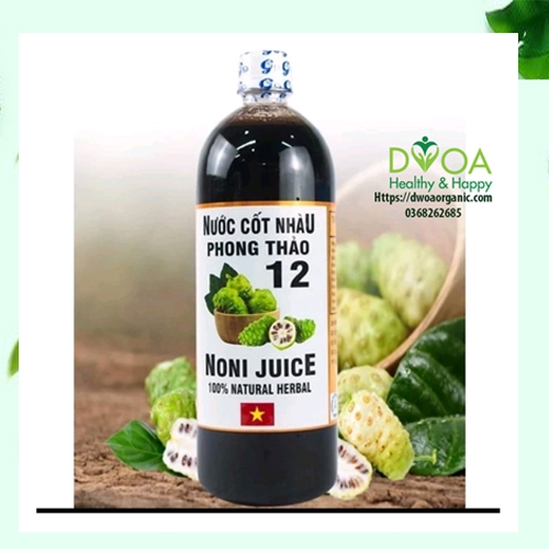 NƯỚC CỐT NHÀU - NONI JUICE được làm từ quả nhàu từ quả nhàu tươi chín trắng ủ lên men trong 12 tháng. Vùng nguyên liệu được trồng theo hướng hữu cơ, đạt chuẩn GLOBAL GAP tại Xuyên Mộc, Bà Rịa - Vũng Tàu, an toàn tuyệt đối với sức khỏe.