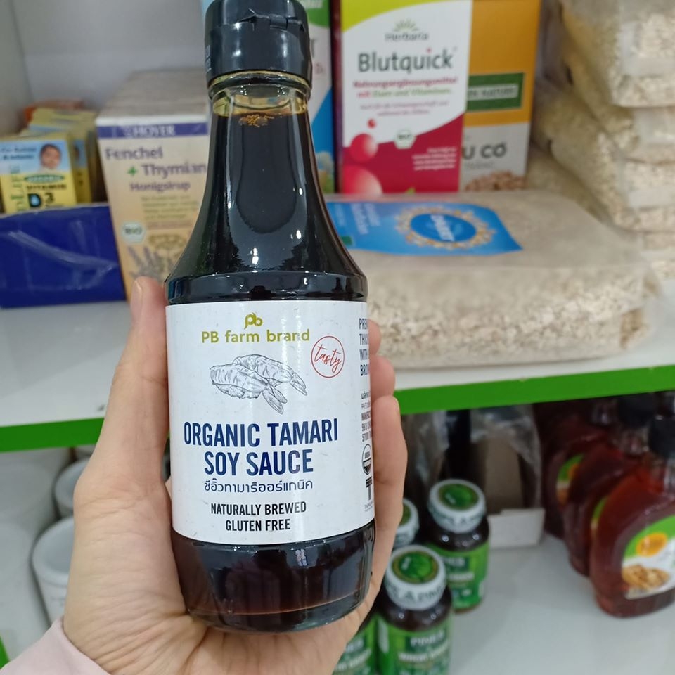Thành phần: Đậu nành 34%, nước 27%, gạo 22%, muối biển không tinh chế 17% Tamari là một loại nước sốt Nhật Bản được làm từ đậu nành lên men.